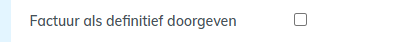 - Voor de koppeling met Wolters Kluwer Twinfield Boekhouden kun je aangeven of je de factuur als definitief wilt doorgeven. Zet voor deze instelling het vinkje aan.