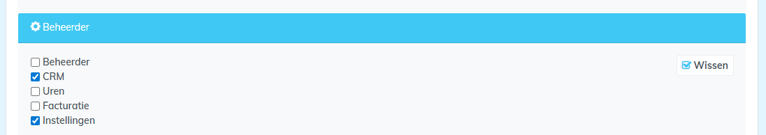 Om gebruik te kunnen maken van deze functionaliteit is het nodig om minimaal beheerder CRM + Instellingen te zijn. Een beheerder kan deze rechten instellen voor een gebruiker. Het is voor een normale gebruiker niet mogelijk om selecties en mailingen aan te maken, wijzigen of wijderen.