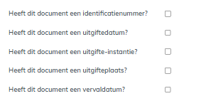 Als je een veld aanvinkt, wordt dit veld verplicht bij het uploaden van het document.