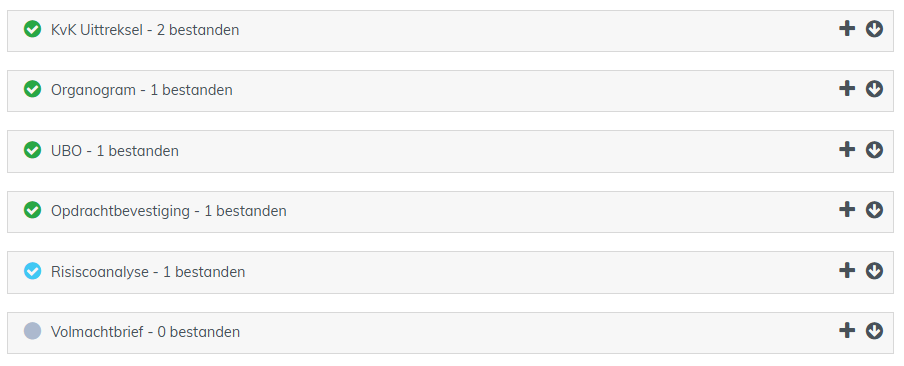 Grijs: Optioneel document ontbreekt of is verlopen.