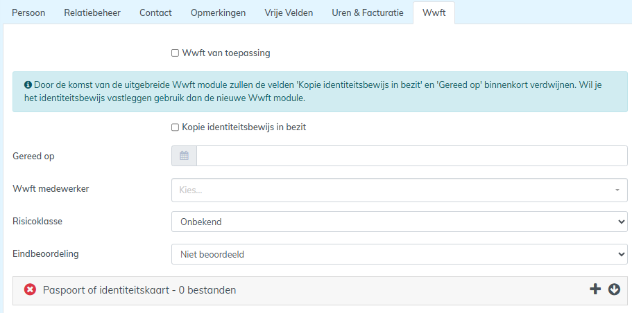 Let op! De module Wwft is alleen volledig te gebruiken als je al gebruik maakt van Cloud Opslag.
