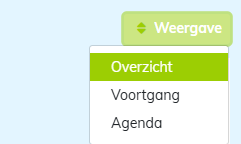Via de knop Instellingen kun je aangeven of je alleen open, alleen afgehandelde of beide soorten taken wilt zien. Daarnaast kun je bovenin kiezen uit verschillende agendaweergaven, zoals:
