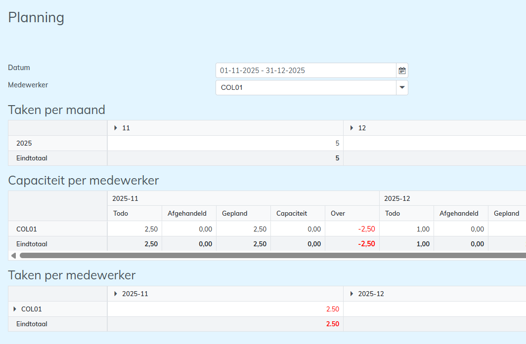 Hiermee krijg je snel inzicht in de planning, werkdruk en taakverdeling.