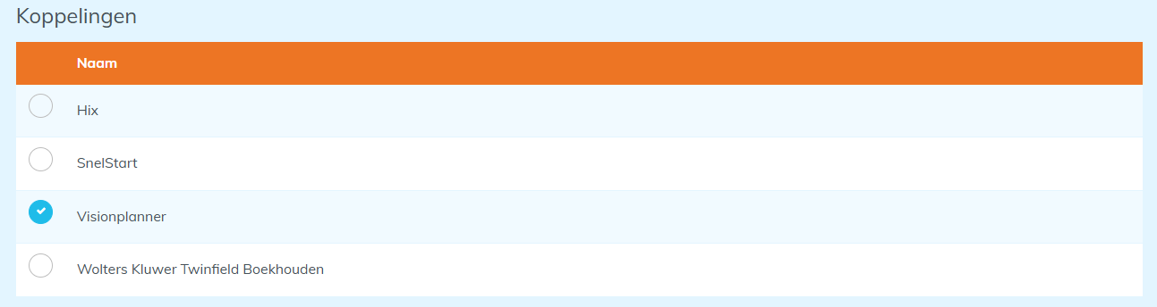 Deze koppeling verzendt gegevens naar Visionplanner. Lees hier meer over de algemene werking van het synchroniseren en de bijbehorende koppelingen.